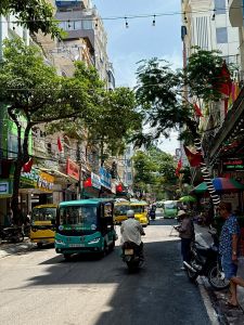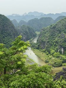 Dann ging es weiter: mit dem Kanu über den Be River nach Tam Coc, durch Reisfelder und kleine Höhlenlandschaften – übrigens auch bei Gewitter. Wir waren jedoch von so hohen Felsen geschützt, dass wir durch den strömenden Regen weiterfahren konnten. In Ninh Nhat durften wir bei Einwohnern zu Gast sein. Sie luden uns ein, mit ihnen zu essen – Jackfrucht, eine sehr süße Frucht, die ich vorher noch nicht kannte. Dieser Abend schenkte uns viele Eindrücke und zeigte, wie offen und herzlich die Menschen sind.